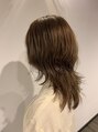 ミディアムウルフにセットで細かいコテ巻きをいれたスタイル仕上げに濡れ感が出るオイルを使用しています。