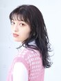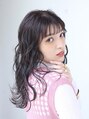 ミディアムレイヤースタイルです。カラーは暗めのパープルにしています。前髪のシースルーにして今時風に。