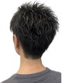 サイドとえりあしはバリカンでしっかり刈り上げ、トップの髪の毛はすいて動きをだしてあります。