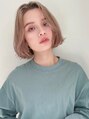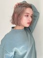 パラっとほつれるラフでヘルシーなワンカールボブ。あごラインで切り揃えたボブは首がスッキリ見えるのでスタイルアップ効果も。カラーはブリーチ必須のミルクティベージュ。お仕事でハイトーンが難しい方は似合うお色をご提案します♪