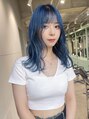 淡く濃いブルーカラー。前髪はパツッとしたスタイル。清楚だけど、個性的なスタイル