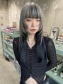 "アンブレラデザインカラー"インナーは深いブルーで透明感だして表面はブリーチで寒色系で白っぽくデザインしました。頬骨からおちる顔まわりデザインで、小顔効果もありながらオシャレにデザインしています。