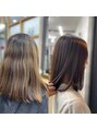 ハイライトが入っているお客様クセ、広がりが気になります縮毛矯正、カラー、髪質改善で理想のスタイルにイメチェンです♪