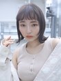 ぱっつん前髪/外ハネミディアム/グレージュカラー/元町