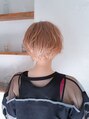 丸みのあるすっきりとしたやわらかいショートヘア。レイヤーを少しいれることで軽やかな印象になります。カラーリングはブリーチをして温かみのあるピンクみのベージュで、大人っぽい雰囲気の中にもかわいらしさもあるような色味に仕上げました。菊川