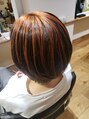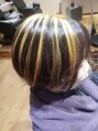 インナーカラー、毛先ブリーチにあきてしまったとのことで逆にトップのほんの一部分を染めるアンブレラカラーに挑戦!!ショートボブにとてもよく合いますね!もちろんメンズにもおすすめです☆