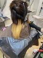 先日2回ブリーチをした後にインナーをカラートリートメントの赤と紫を入れて赤紫にしました!結んだ時に隠れるように根元はあけてブリーチをしています。