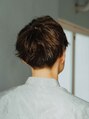 耳周り、バックをすっきりと短くしたさわやかなツーブロックのアップバングスタイルです。前髪は、黒目の上からしっかりとあげることでバランスの良いスタイルに。全体の毛先は無造作に動かして毛束感をプラスしています。