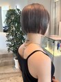 こだわりの美しいカットラインのミニボブです。顎上1cmのミニボブでもちがよく艶を残していますが内側は軽くスタイリングしやすい様に仕上げています。カラーはブリーチ必須のグレーカラーです。