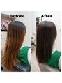 毛先のダメージが気になり広がるのも気になる20代のお客様、メテオカラートリートメントでトーンダウンしつつも抜け感のあるカラーでツヤツヤに仕上げました。
