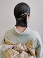 お着物とタイトなボブセットです。お客様の持ち込んで頂いたアクセサリーと、イメージデザインで作らせていただきました◎