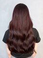 ワインレッドロング_斜めバンググレージュカラー_ba417571