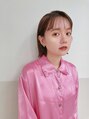 あごラインのミニボブ。ストレートアイロンでちょっとだけ外ハネさせて、オイルでスタイリング。耳かけして小顔シルエットに。カラーは柔らかく透けるマロンベージュ。