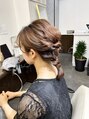 くしゅっとさせたスタイリングで短めのヘアに動きをつけています。ざっくりとねじってまとめたヘアで華やかな印象にしてみました♪★ルーズな無造作感が大人っぽい★無造作にまとめたルーズなアレンジでこなれ感を+