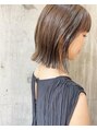 切りっぱなしのラインを残しつつもしっかりと毛量を調整してもたつきを取り、軽さが出るように仕上げました。カラーはグレーを多めに入れたグレージュです。