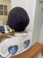 都内で大人気ひし形ショート☆ドライヤーのみでも◎アイロンでふわっと仕上げても◎ケアブリーチ後アクアバイオレットでより柔らかさをプラス。ショートは誰が切るかでかなり変わります!襟足の長さでシルエットも変えられます!ぜひお任せ下さい、、☆