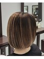 王道の肩上ボブ!カラーはグラデーションにアッシュベージュでハイライトを