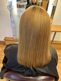 根本ブリーチ1回、中間ブリーチ2回、毛先ブリーチ3回のハイダメージ毛でも薬剤の塗り分けなどでダメージを最小限に抑えて艶のある自然なストレートに出来ます!酸性ストレートでご予約下さい!