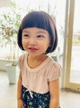 小さくても女の子はオシャレが大好き!美容室デビューの記念すべき日に可愛いヘアスタイルでオシャレの扉を一緒に開けてあげたいです♪ワイドバングのボブスタイルに☆耳にかけてもコロンとしてて◎可愛いヘアスタイルは最高の笑顔を引き出してくれます(^^)