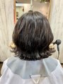 あご下の切りっぱなしボブをウェーブ巻きでお仕上げ。