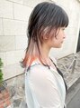 【気に入ったスタイルは、お気に入りに登録してカウンセリングの際にお使いください】ミルクティーベージュにオレンジとブラックを裾に合わせたインナーカラー ♪オシャレ女子発見です!毛先パーマ/コテ巻き/前髪パーマ/ダブルカラー/ハイトーン/ハイライト