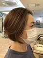 毛量が多いので後ろサッパリ耳掛けも出来るよう耳まわりもスッキリ 数ヶ月前のカラー×メッシュを生かしたカットです