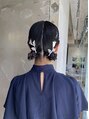 結婚式参列ヘアセット*タイトなお団子アレンジレースの装飾と、銀箔でネイビーのドレスに合わせてます