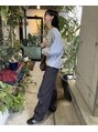切りっぱなしミディアムです。タイトにスタイリングして、透明感のでるカラーで重すぎず。
