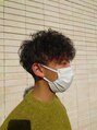サイドとえりあしを刈り上げた、マッシュスタイルベースに強めのスパイラルパーマを組み合わせました。