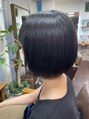 緩めな前下がりボブになっております。内側にも簡単になりますのでドライヤーでのセットも楽ちんです。
