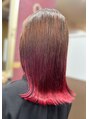 抜けたブリーチ毛に塩基性のピンク×レッド×オレンジをチョイスし彩度を復活させました☆