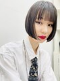 パツンとした雰囲気の顎ラインボブ。アッシュブラックや暗髪と組み合わせて色っぽボブ風に演出するのがおすすめです。切りっぱなしボブにしたい方やモードなイメージが気分の方にもおすすめですね。赤リップが映えるスタイル