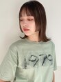 ぱつんとカットしたサイドがポイントの鎖骨ミディ。ゆるくワンカールさせてアレンジ。全体は外ハネ、サイドは内巻き。カラーはオリーブベージュベースに細めのハイライトで陰影を