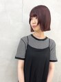 ぱつっとボブに顔まわりのレイヤーをミックスしたデザインカラーは赤系で暗めのボルドー系をいれて艶々でお肌馴染みの良いカラーに。