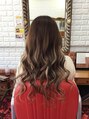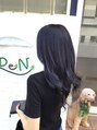 カシスぽい赤紫です。毛先は少しブリーチが残ってます。
