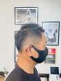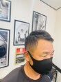 サイド、バックは6ミリのバリカンで自然に刈上げています。裾周りはスッキリ感を出す為に3ミリのバリカンを入れています。上の長さはスタイリング剤で動きが出る長さを残しています。メリハリがあり、どの世代にもハマるスタイルです。