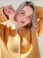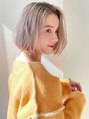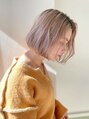 パラっとほつれるラフでヘルシーなワンカールボブ。あごラインで切り揃えたボブは首がスッキリ見えるのでスタイルアップ効果も。カラーはブリーチ必須のミルクティベージュ。お仕事でハイトーンが難しい方は似合うお色をご提案します♪
