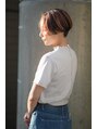ツーセクションのショートで、ハチ下は厚め刈り上げ。メリハリのあるシルエットでクールに。カラーはバレイヤージュで陰影を出したトレンドカラーのコーラルピンク。デザイン性のある大人ショートでカッコよく仕上げます。ボンドカラーでダメージレス!