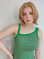 肩上丈のボブ。顔周りにほんのりレイヤーが入っているので、巻いて人気のくびれシルエットに。カラーはブリーチ有りハニーゴールドベージュ。カラーは暗髪でも可愛いのでご相談下さい。