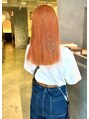 ダブルカラーでつくる、透明感たっぷりのハイトーンオレンジカラー♪コーディネートのアクセントにもなるので、シンプルコーデ、ストレートヘアでも可愛いです◎