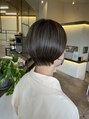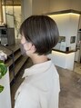 襟足ぎりぎりのショートボブに、つるんとしたスタイリングでも立体感動きが出るハイライトカラーを。透明感のあるグレージュをオン!白髪染めは使いません♪