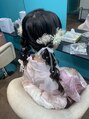 浴衣や熱くてまとめたい時にピッタリ!リボンは当店のですがその他の髪飾りはお客様の持ち込みです。