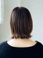 カットは流行りのプツッとボブにして、重たくならないようにカラーはイヤリングカラーで明るめのベージュにしました。表面のカラーを暗くすることでコントラストがはっきりしてイヤリングカラーが目立つようになっています。[新小岩駅/新小岩]