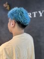 フェードカットに細かめのパーマをあてて、ラムネイメージの水色をオンしました!