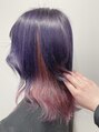 バイオレットとコーラルピンクの個性抜群の組み合わせ!ブリーチ2回は必要なカラーです!普通のインナーカラーが飽きてきた方におすすめです◎