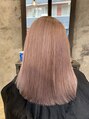 ケアブリーチで2回ブリーチし、黄ばみを完全に消します。色落ちしてもベースがホワイト系なのでムラサキシャンプーやピンクシャンプーなどお好みで色味の補充ができます☆