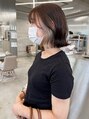 イヤリングカラーの部分はホワイトベージュにして、後ろとのコントラストをつけています!切りっぱなしボブにして毛先は重さのある感じています!