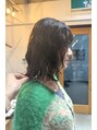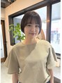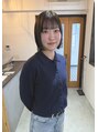 柔らかい暗めのグレージュとぷつっと切りっぱなしボブのスタイルです!