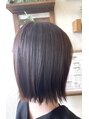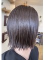 切りっぱなしのショートボブ!ギリ縛れるのが何かと便利な長さです。夏の暑い時期は襟足を短く切って少しでも首に風が当たるようにしてあります。カラーは赤みを消すのにオリーブを配合したベージュに♪お顔周りが気になる方は前下がりにしても素敵です!