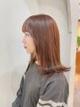 大人可愛いオレンジブラウン鎖骨丈外ハネミディ☆デザインカラー